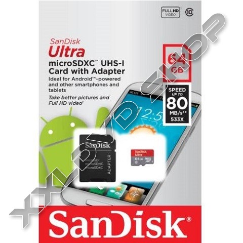 SANDISK ULTRA 64GB MICRO SDHC MEMÓRIAKÁRTYA UHS-I ANDROID CLASS 10 + ADAPTER